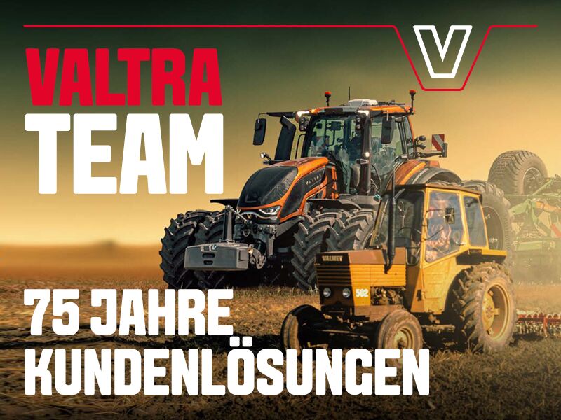 Valtra wird 75 Jahre alt und Sie können mitfeiern. Schlagen Sie jetzt zu und holen Sie sich die Valtra Jubiläumsfinanzierung ab 0,00 % Zinsen beim Kauf von Valtra Neumaschinen der Serien A, G, N, S, T und Q. Aktion gültig bis auf Widerruf.