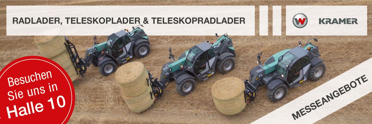Benötigen Sie einen Lader für Ihren Hof? Dann besuchen Sie jetzt den Kramer Messestand auf der Austro Agrar Tulln. Bei uns finden Sie alles von wendigen Radladern über vielseitige Teleskopradlader bis hin zu weitreichenden Teleskopladern. Schlagen Sie jetzt zu und sichern Sie sich zusätzlich exklusive Messeangebote. Überzeugen Sie sich jetzt auf dem Kramer Messestand in Halle 10.