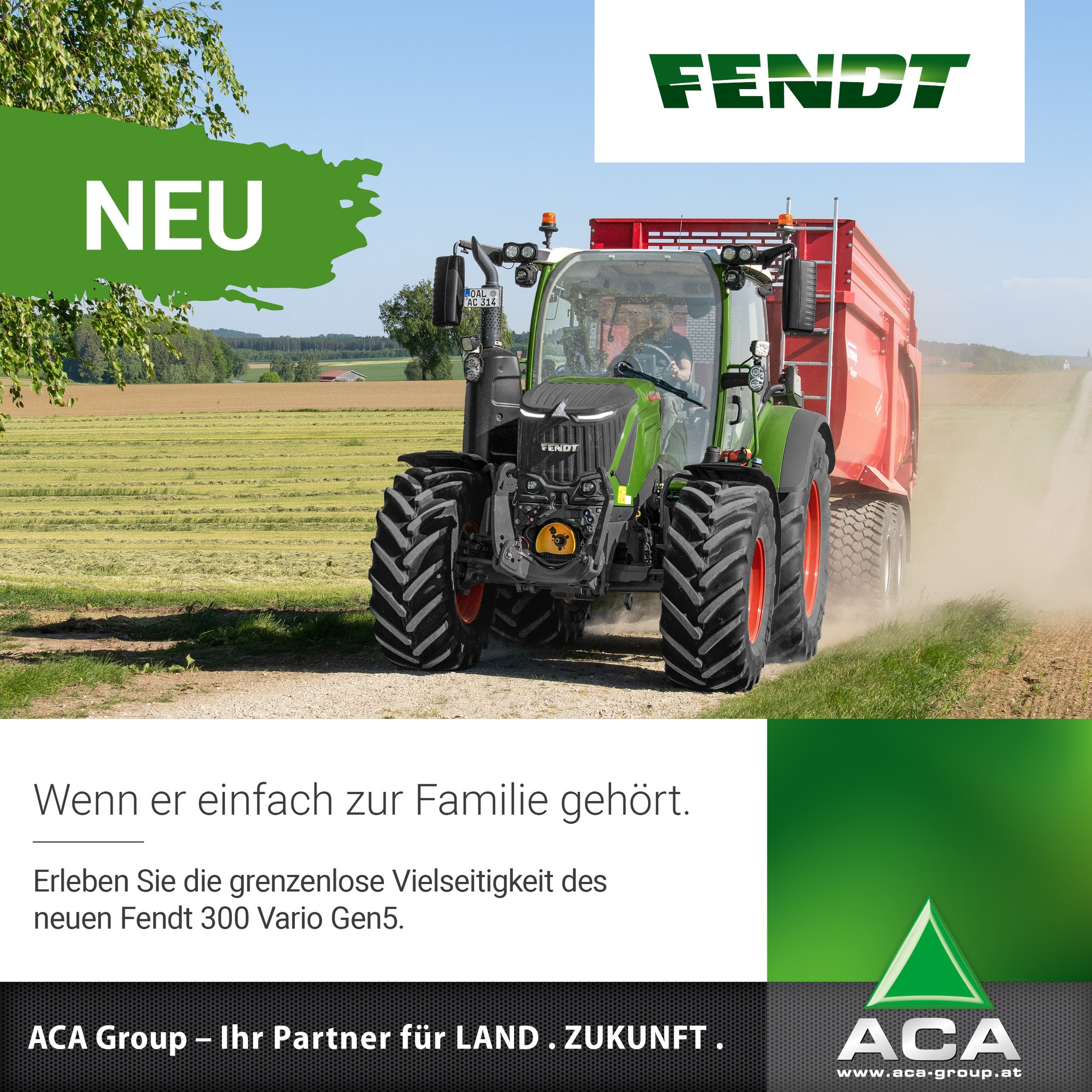 Sei es im Grünland, auf dem Acker oder beim Transport. Der neue Fendt 300 Vario überzeugt durch seine Vielseitigkeit in jedem Einsatzbereich. Die vier kraftvollen Modelle mit einer Maximalleistung mit Fendt DynamicPerformance von 113 bis 152 PS bieten in Kombination mit den drei Ausstattungslinien Power, Profi und Profi+ für jede Aufgabe die passende Lösung. Abgerundet wird das Gesamtpaket durch den neuen um 20° drehbaren Titanium Fahrersitz und dem intuitiven FendtONE Fahrerarbeitsplatz, der höchste Effizienz und Flexibilität im täglichen Arbeitsablauf ermöglicht. Erfahre mehr über die Vielseitigkeit des neuen Fendt 300 Vario unter https://fendt.com/300-vario-gen5