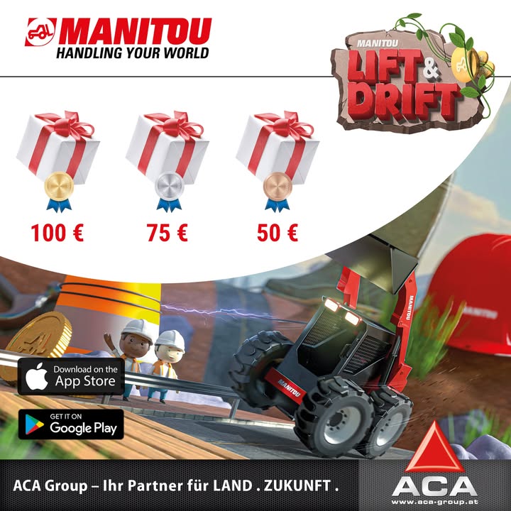 Kennst du schon unsere App "Lift & Drift"? Hier steuerst du einen Miniatur-Manitou durch unterschiedliche Level und nimmst an spannenden Turnieren teil. Mit dem Turnier-Code MANITOU2025 hast du die Chance auf tolle Preise: Jeder Teilnehmer erhält ein kostenloses Ticket für die Agritechnica-Messe, und die Top drei gewinnen ein exklusives Manitou Goodie-Paket! 🎁🎫 ⚡Bist du bereit für die Herausforderung? Dann lade dir jetzt die Lift & Drift App im Apple Store oder Google Play Store herunter!